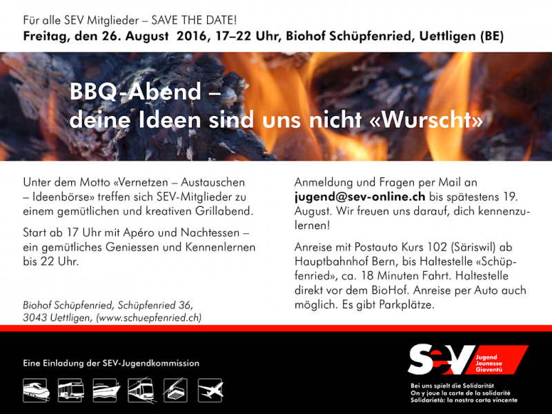 Unter dem Motto «Vernetzen – Austauschen – Ideenbörse» treffen sich SEV-Mitglieder zu einem gemütlichen und kreativen Grillabend.